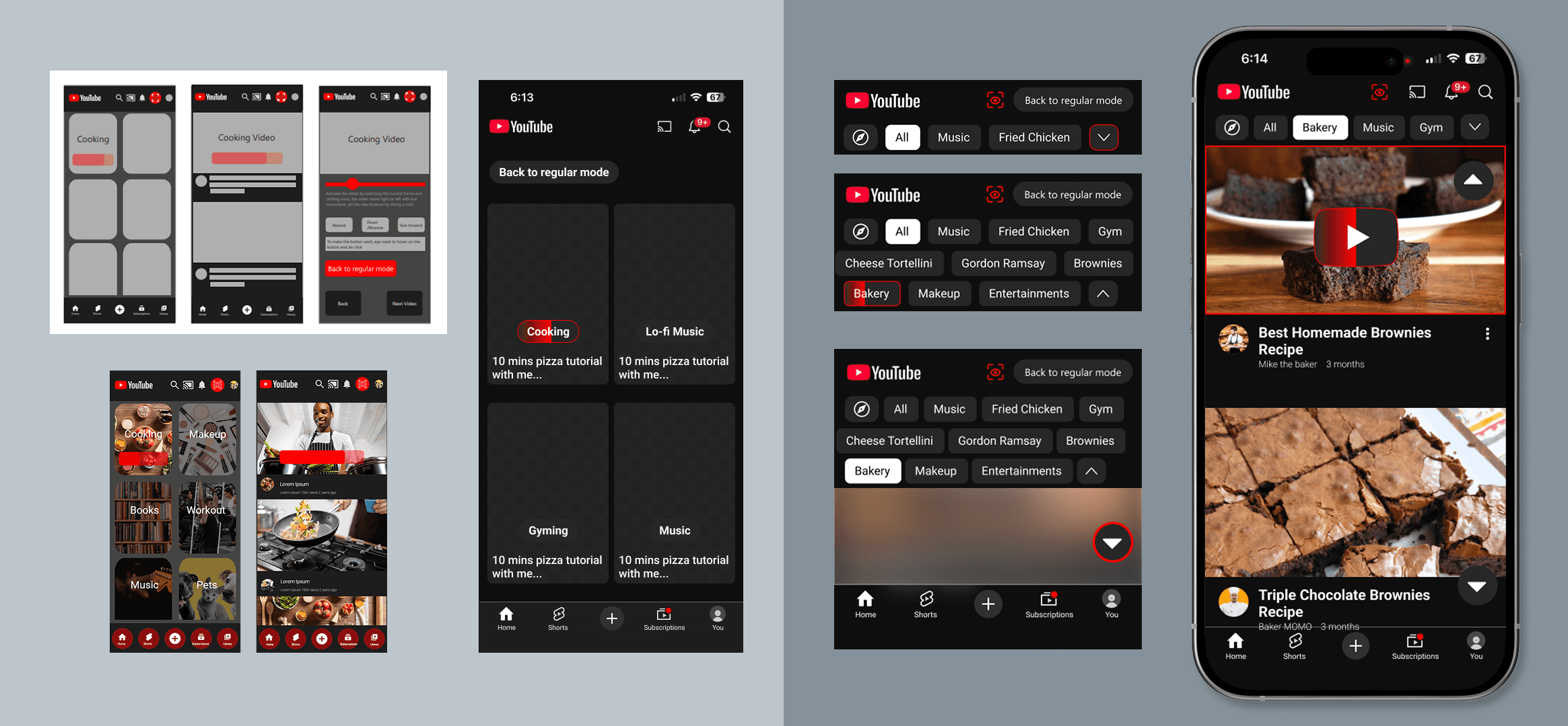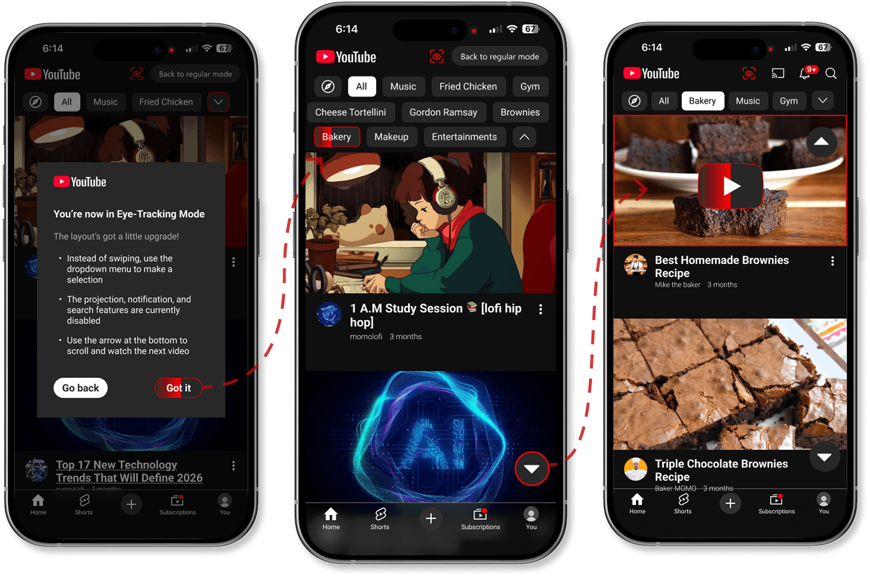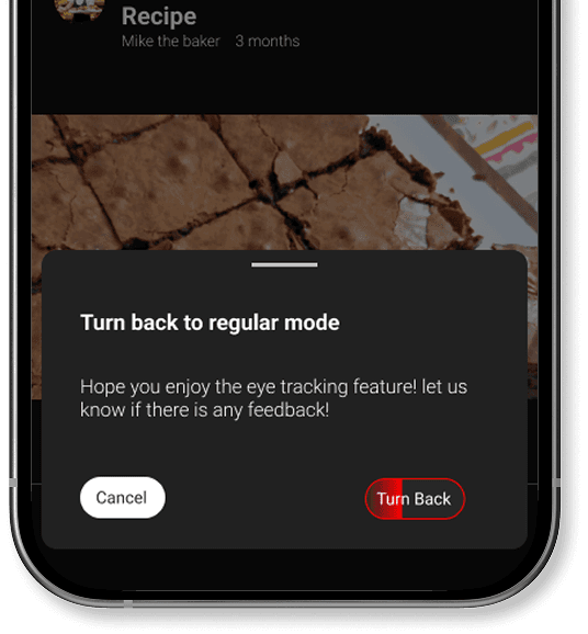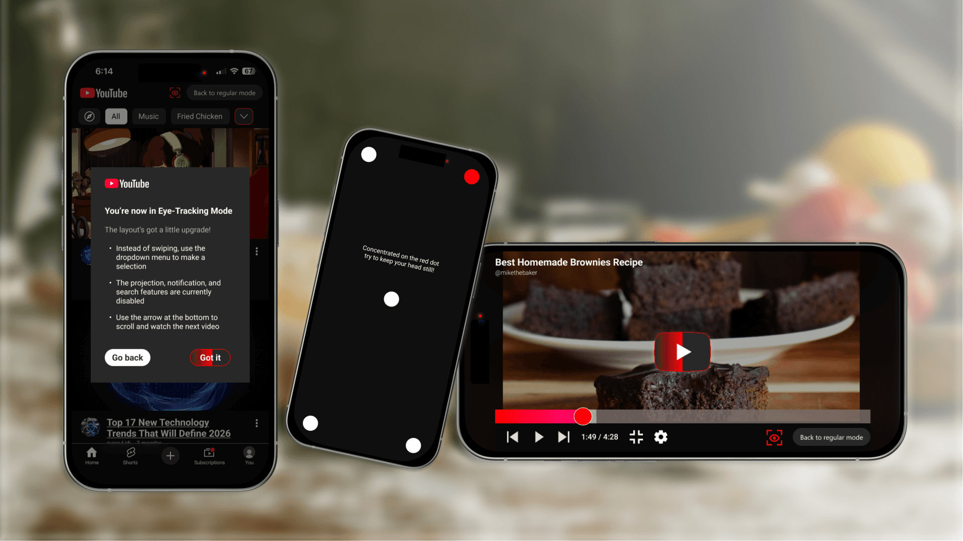 I designed an eye tracking mode for YouTube Mobile that works even in noisy environments where voice control might fail.